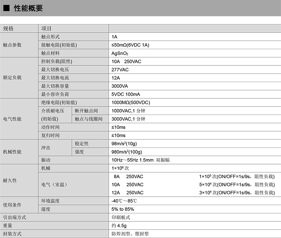 ● 12A 触点切换能力