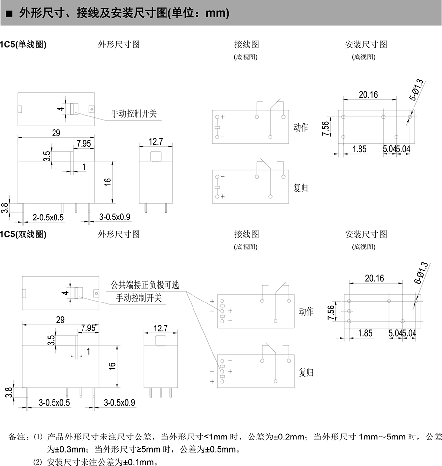 ● 外形尺寸:(29.0×12.7×16.0)mm